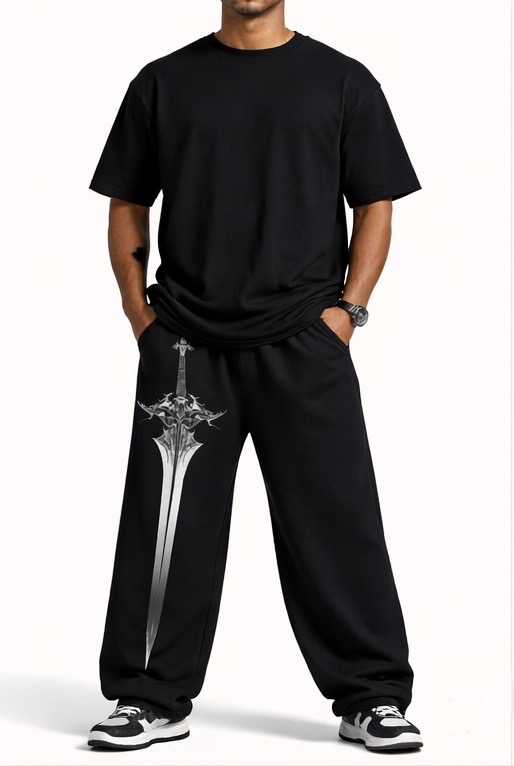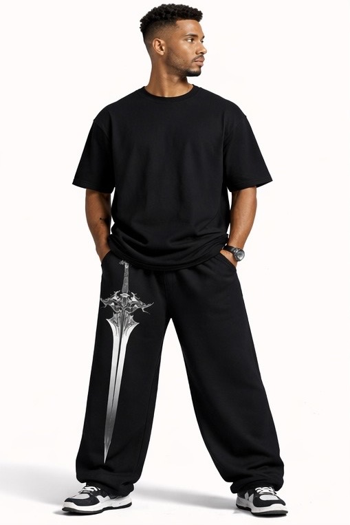 These black graphic joggers from Driplet Clothing are made for those who stand firm in their truth. Featuring a powerful sword graphic symbolizing strength and resilience on one leg, and the bold statement “ONLY GOD CAN JUDGE ME” on the other, this piece speaks confidence without apology.